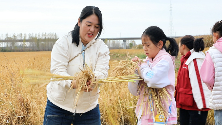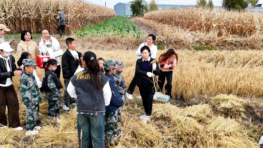 田间地头里,妇联干部和农技志愿者化身“田间老师”,为孩子们详解水稻从“春播一粒种”到“秋收万颗粮”的生长历程与耕种知识。孩子们戴好手套、手持镰刀,在志愿者的指导下小心翼翼体验割水稻、剥玉米的劳作辛苦,亲身读懂“粒粒皆辛苦”的深意。