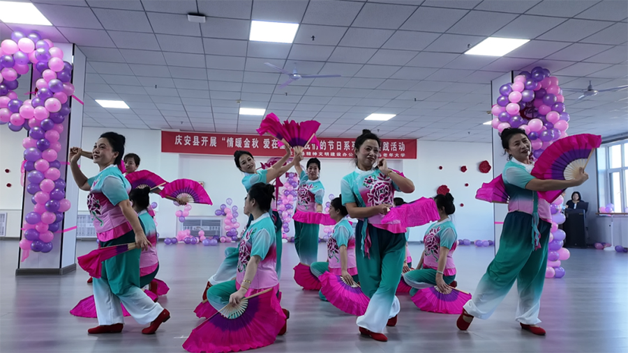 县老年大学则以“情暖金秋爱在重阳”为主题,举办了一场精彩的文艺演出。舞台上,学员们带来的舞蹈节目节奏明快、舞姿优美,展现出老年人的活力风采;独唱曲目或悠扬婉转或激昂有力,引得台下阵阵掌声。演出间隙穿插的互动游戏更是点燃现场气氛,老人们积极参与,在欢声笑语中拉近了彼此距离,充分感受节日的欢乐氛围。