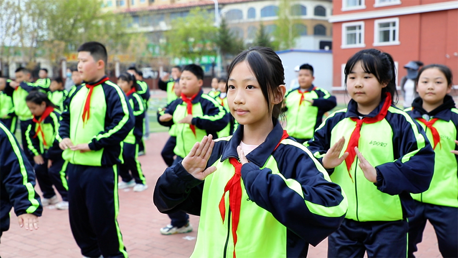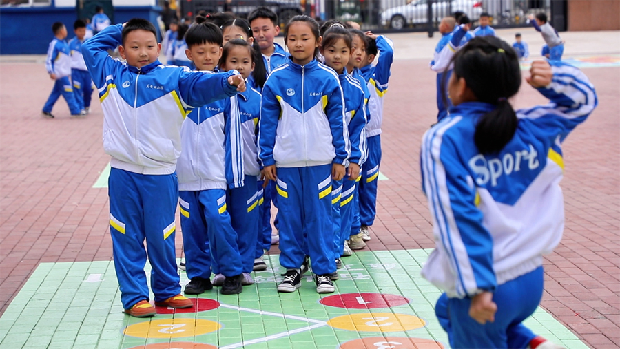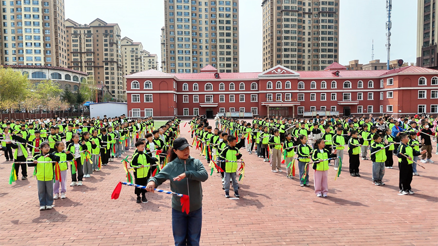 第四小学校长宋晶(体育大课间是落实‘五育并举’的重要载体,我们将传统非遗文化、经典游戏与现代体育项目有机融合,就是希望打破常规体育活动的边界。看到孩子们在操场上尽情挥洒汗水、传承文化,用朝气蓬勃的姿态拥抱每一天,这也让我们更加坚定了继续创新优化大课间活动的决心,未来会不断丰富活动形式,为孩子们打造更优质的成长平台。)