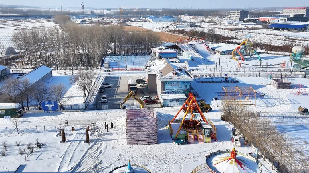 随着冬季来临,庆安县绿乡花田欢乐王国内一片繁忙景象,大型机械与工人正紧密协作,对园区进行完善与布置,全力准备迎接八方游客。