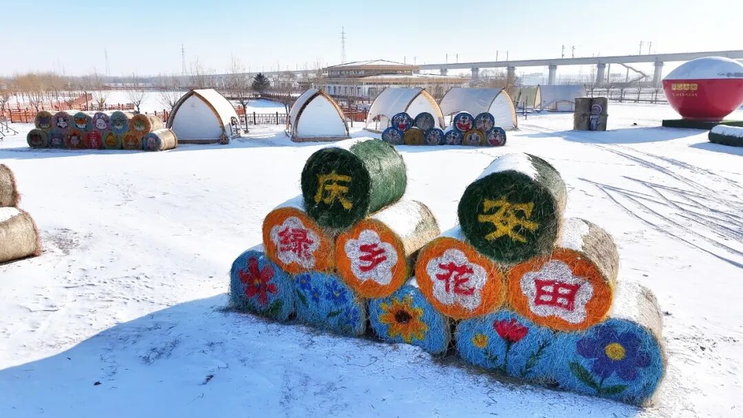 庆安县绿乡花田冰雪嘉年华园区经理吕文斌(我们绿乡花田冰雪嘉年华在去年的基础上,把雪间道增高延长了,让它有更高的刺激性和趣味性,又在稻作文化上做了很多功夫,比如现在比较流行的草原瑞士卷,在草包上做一些卡通的图案,让大家拍照打卡,更有观赏性。)