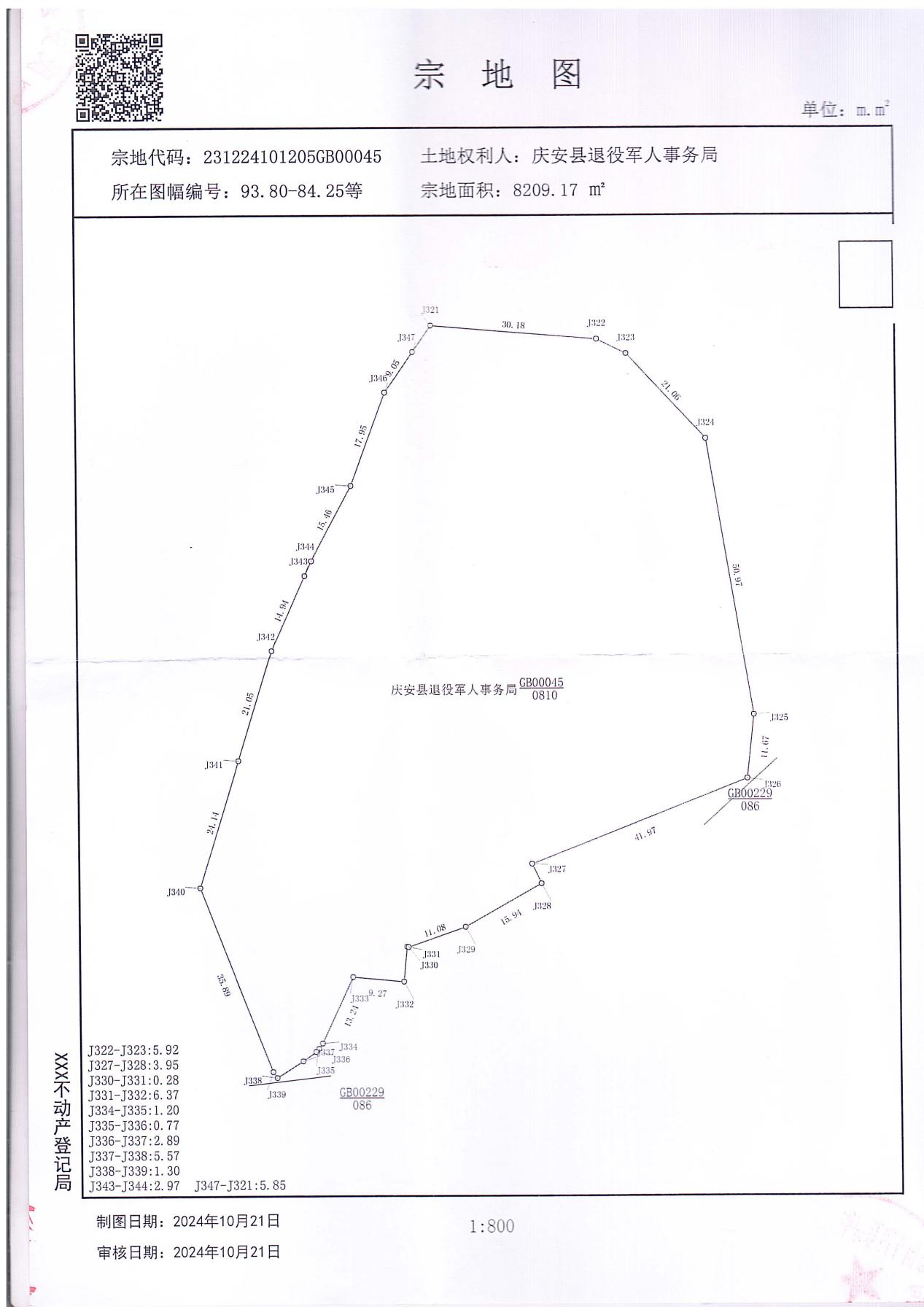 庆安县烈士陵园现址位于庆安县人民公园西北侧,土地不动产权证书(黑(2024)庆安县不动产权第0016996号)勘测定界面积8,209.17平方米。