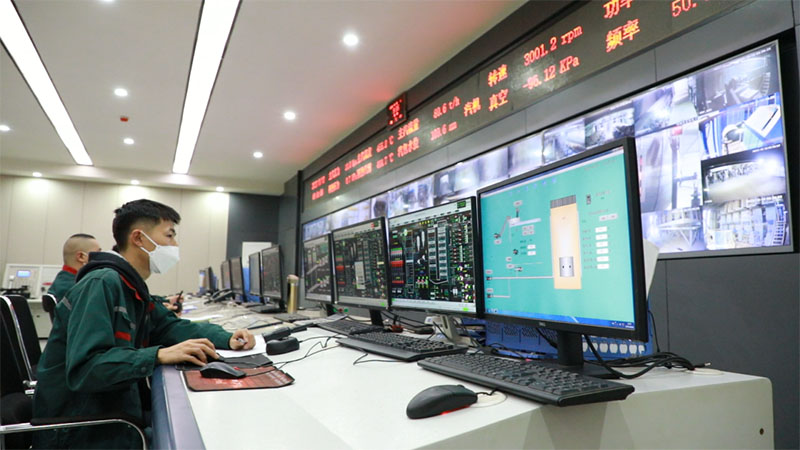 县融媒体中心刘宇博(我现在就是在庆翔热电集控室车间内,在我身后工作人员正在对锅炉进行调试与监控作业,就在昨晚8点58分,庆翔热电的260吨燃生物质锅炉一次点火成功,经过炉内升温,将于10日上午9点并网供热,这也标志着我县的供热工作将提前5天开栓供热。)